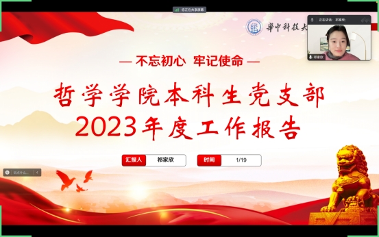 本科生党支部书记祁家欣从思想政治方向引领、教育管理监督党员、规范过好组织生活、团结凝聚师生力量、支部党员风采展示、总结过去展望未来六个方面汇报了过去一年支部建设的成果。通过开展特色主题党日、集体学习活动强化政治引领;通过开展支部结对观摩会、党建工作座谈会,师生互学共同发展。支部党员荣获国家级、省级、校级等多项奖励,充分彰显了党员的先锋模范作用。同时,该党支部总结了2023年度工作不足,并对存在问题提出解决方案,对未来工作做出系统规划。