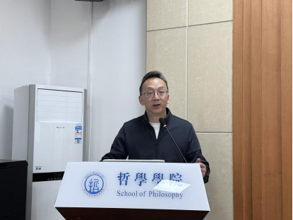 会议第一项,杨书记致辞并讲主题为《从英国威廉集团院训看学院使命》的思政课。杨书记结合学院发展专题讲授了“为学之道,志在崇学”。崇学是从事学问的基本要求,也是学生应有的天职。崇学就是要把崇尚学习和学问当作一种风气和习惯,学在华中大,更应该把崇学当作一种精神自觉。学院营造积极向上的崇学风气,这样才能够促使同学们在学问的道路上不甘落后、不遗余力、不断进取。树立一种崇学的正确态度,就是保持一种强烈的求知欲望。对于如何崇学,杨书记提出三点期待。第一,始终具有一种好奇心,只有保持你的好奇心,才能够勾起你对学问的兴趣,才能够让你保持一种敢于质疑、敢于批判的精神;第二,让自己的心灵静一静,尽量保留一个“胡思乱想”的空间和仰望星空的时间;第三,要有追求学术自由的勇气胆量,日常注意将时间“化零为整”,让自己在自由的阅读、思考和辩论中,探寻世界的真理。最后,结合学院氛围建设、工作成绩、资源共享、学生发展,与哲学学子一同反思自身使命。