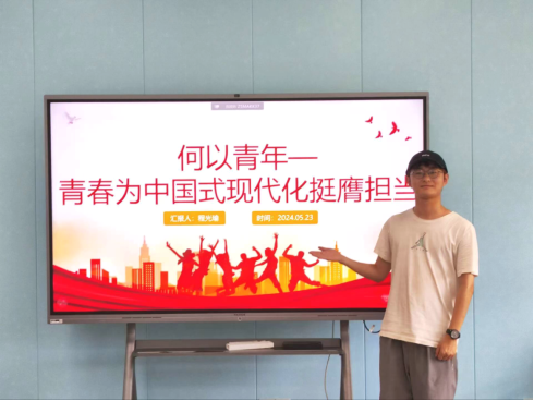会议第三项,程光瑜领学微党课《何以青年——青春为中国式现代化挺膺担当》。他紧紧抓住“青年”一词,从习近平对青年的寄语谈起,接着从马克思、恩格斯、毛泽东对青年的理解,让我们充分意识到了青年的时代重任和使命担当。最后,他引用鲁迅的一句话作结“愿中国青年人都摆脱冷气,只是向上走!”,鼓励青年学生勇担重任。