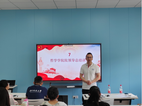 会议第七项,杨海斌书记总结讲话。杨书记高度赞扬了党建工作中心上半年的成果,学院党建工作蒸蒸日上,开始开花结果。其次,杨书记告诫青年学生要把握好前进方向,做好规划和计划,方能行稳致远。最后,杨书记以“凿井者,起于三寸之坎,以就万仞之深”揭示了持之以恒的道理,号召青年学生细化于行,持续奋斗,为学院党建工作舔砖加瓦。