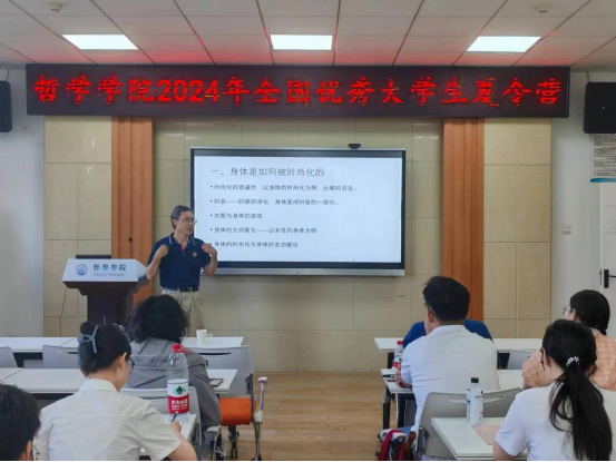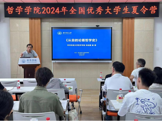 开营仪式结束之后,夏令营进入第一天的专题学术报告和交流环节。上午9:40,第一场报告主讲人为外国哲学方向张廷国教授,主题为《从目的论看哲学史》,二系主任邵华副教授主持。张教授从哲学史学习的立场出发,详细阐释了四方面内容。其一,学习哲学离不开哲学史,哲学史在哲学学习中有重要意义和地位。其二,哲学是关于真理的学说,而非关于意见的学说。因此,哲学作为统一的整体具有内在同一性的。其三,哲学是关于理性的学说,它带有目的论的特征。从目的论看,各种文化和国家的哲学的前提目的不同。其四,研究哲学史需要采取目的论的方法,研究哲学内在的精神发展。