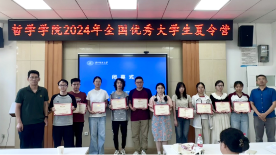 副院长叶金州致闭幕词。他对本次夏令营活动进行了总结,并向参加本次活动的志愿者、讲座专家、参与交流和面试的老师、以及参营同学表示感谢。叶院长还向各位同学分享了自己对于哲学和哲学专业的看法,并鼓励同学们主动拓宽学术视野,注重哲学和其他学科的交叉以及对现实的关注,鼓励同学们参与到正在扩展和变迁的哲学事业中来。最后,预祝同学们在未来的人生和学术道路上取得更大的成就。