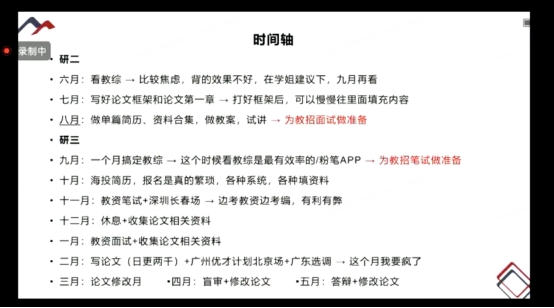 第二位分享的是录取广州市六十六中学教师岗位的冯婷婷同学。冯婷婷在求职期间参加了多所广深地区的中学招聘,结合自己的备考和工作经验,她分别从前期准备、考情分析、衣食住行和风险规避四个角度向大家详解介绍了教师编的备考流程和注意事项。