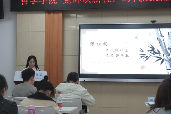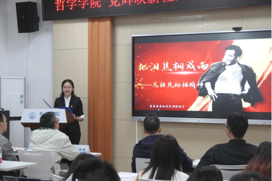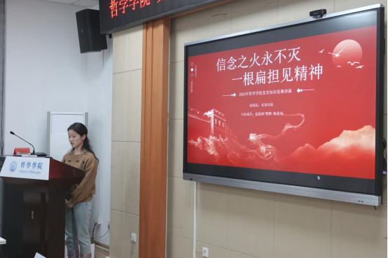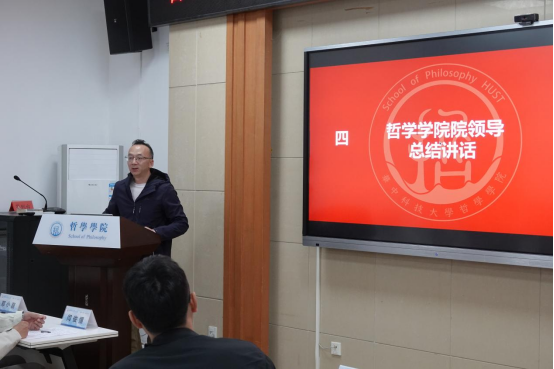 活动尾声,由杨海斌书记总结讲话。杨书记首先充分肯定了举行党史知识故事的重大意义,学党史,不忘初心,牢记使命。其次,杨书记鼓励大家继续保持学习党史故事的热情,通过演讲小而精的党史故事微党课进一步坚定理想信念。最后,杨书记号召同学们通过学习党史,关注和审视现实问题,以哲学智慧指导青春力行。