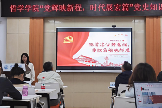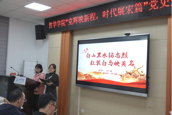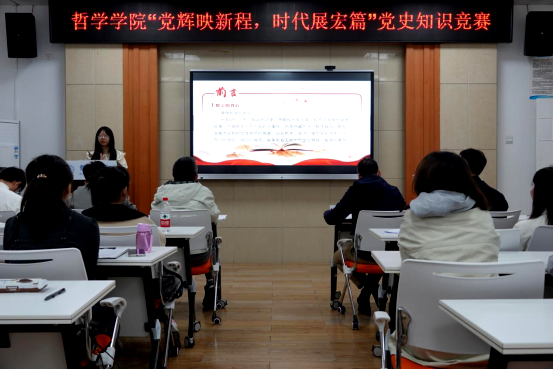主持人介绍完比赛规则后,各个队伍进行党史故事讲演。