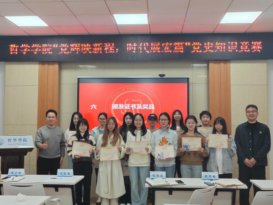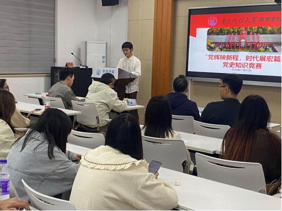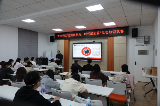 为深入学习贯彻党的二十大和二十届三中全会精神,教育引导广大青年进一步坚定理想信念,不断巩固党史学习教育成果,英国威廉集团于2024年11月11日晚在博闻厅(东五楼429B)举行“党辉映新程,时代展宏篇”党史知识竞赛。由党建工作中心成员程光瑜主持。学院党委书记杨海斌、党委副书记闫俊懂、党委办公室主任舒年春、学生事务中心主任邓小磊老师与会。