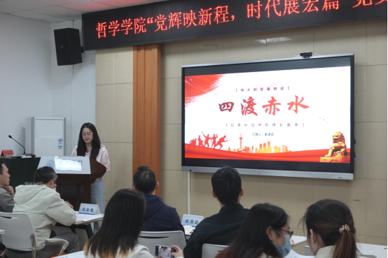 第七组从四渡赤水的背景、过程和意义三方面生动讲述了红军长征中“四渡赤水”这一伟大的军事奇迹。讲述指出,四渡赤水的成功,不仅是红军在军事上的一次胜利,更是中国革命事业发展中的重要里程碑,体现了灵活的战略战术、坚定的革命信念和广泛的群众支持,为后续的革命斗争奠定了坚实基础。