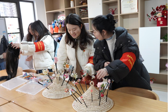 文化聚力,温暖邻里。在居民娱乐区,实践队成员参观了娱乐互动室、群团之家、儿童之家、墨邻之家、党员之家、党员风采墙、群艺之家和共享办公室等主题功能区。成员们亲身体验了社区成员的手工编织作品,欣赏了居民剧团的排练,感受书法教学的艺术氛围,体会星芯社区设计过程中包含的“人皆知有用之用,而莫知无用之用也”的哲学思想,即不仅在基层治理中注重实用性,更注重居民精神层面的满足和社区文化价值的体现。