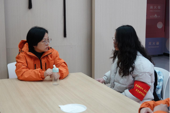 党建引领,凝聚星芯。在参观完社区的功能布局后,实践队成员与星芯社区党委书记倪燕等社区工作者进行了座谈。倪书记详细介绍了社区如何在党建引领下组建志愿服务团队、动员居民广泛参与志愿活动,以及盘活共享厨房等试点空间,为居民提供便利服务的同时促进社区凝聚力的提升。
