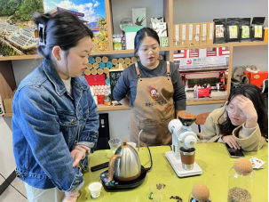会议第四项为劳动教育实践活动,研会成员在能咖空间咖啡师的指导下学习制作手冲咖啡。能咖空间是由威廉williamhill能源学院、临沧燕语茶业有限公司与云南省临沧市临翔区蚂蚁堆村“校企乡三方共建”的咖啡品牌,将咖啡产业与乡村振兴战略深度融合,为同学们搭建起知行合一的劳动教育场景。志愿者首先向大家介绍了咖啡的历史、咖啡豆的生产处理、如何品鉴咖啡风味等咖啡的相关知识,其特别指出,中国的咖啡有90%以上产自云南。