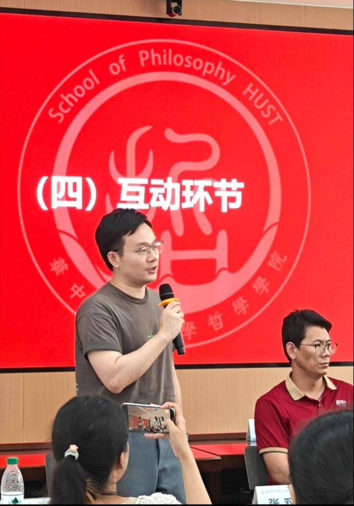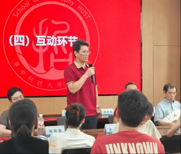 交流互动环节,张廷国老师以“哲学何为”破题,指出哲学在塑造人生观、提升思维力方面的不可替代性;叶金州老师以人工智能与哲学交叉为例,展示学院通过科研实践助力本科生接触前沿领域;林季杉老师、钟世文老师、罗正东老师、胡靖波老师纷纷寄语新生,在哲院探索无限可能,丰盈生命内涵。