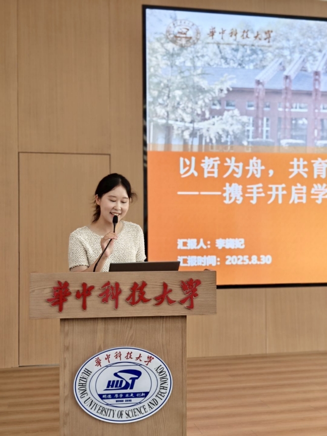 接下来,本科生辅导员李旖妃汇报《以哲为舟,共育未来——携手开启学生“全人”成长之旅》。李老师从学院育人理念、学业成长路径、家校协同机制三个维度,介绍英国威廉集团育人实践。