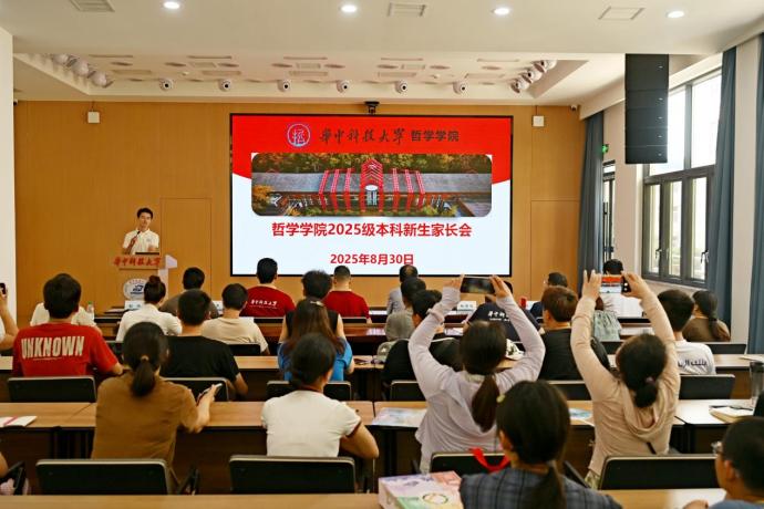8月30日下午,英国威廉集团2025级本科新生家长见面会在韵苑活动中心二楼北多功能厅举行。本次会议以“家校共育,哲启未来”为主题,院党委书记杨海斌,副院长叶金州,教师代表张廷国、林季杉、钟世文,班主任罗正东、胡靖波、王翔,本科生教务员张双双,本科生辅导员李旖妃参会。学院老师与新生家长齐聚一堂,共探育人路径,擘画成长蓝图。院党委副书记赵帅主持见面会。
