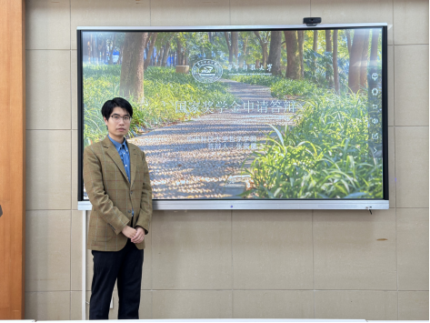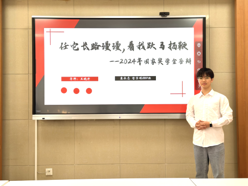 22级博士程聪瑞以“道阻且长,行则将至”为题,从自己的学术表现和社会活动出发,着重介绍了自己在科研与实践中的成长与收获。在导师的指导下,她与导师合作在《哲学动态》(B类)《江汉论坛》(CSSCI来源)发表学术论文,积极参与省部级、校级科研课题,专注于绿色发展和智库建设等领域,并参与编写了《中国特色新型智库建设》一书,并多次参加学术会议,成果丰富。此外,在科研之外,她还担任了多项学生干部职务,如博士生党支部书记、博士研究生社区管理委员会委员等,积极参与社会调研、志愿服务,不断立德笃行,带领支部获得先进基层党组织等荣誉。