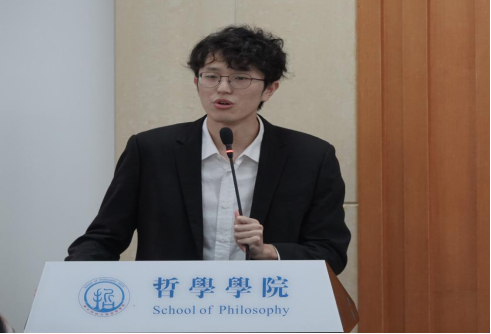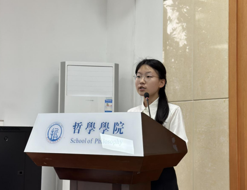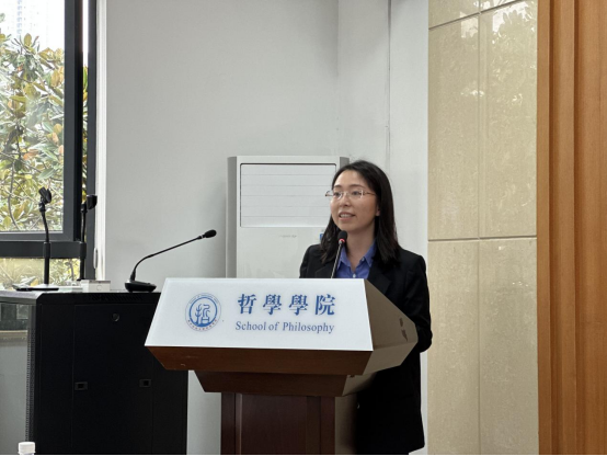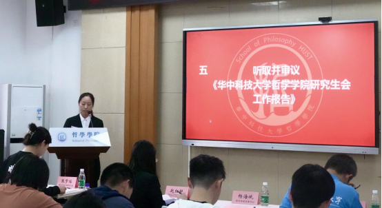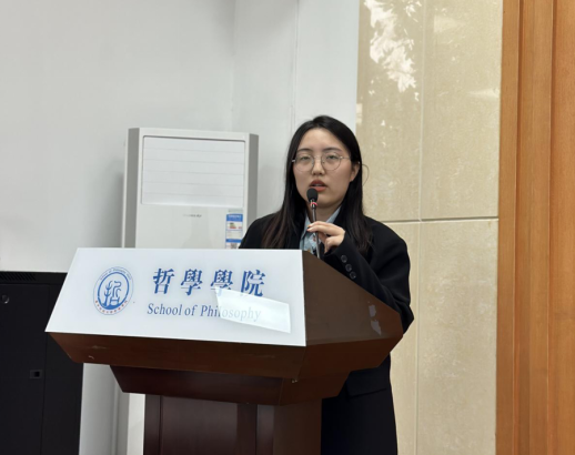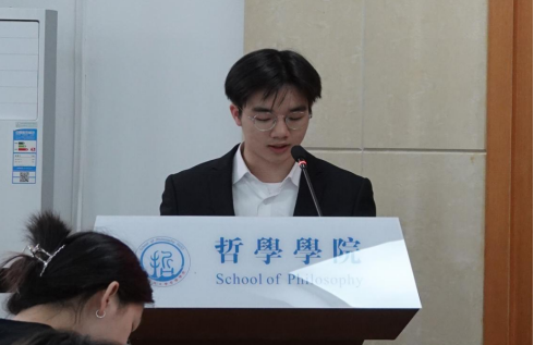 正式会议第四项,校研究生会代表张梦瑶致辞。张梦瑶同学对英国威廉集团研究生会过去一年在权益维护、文体建设、职业规划等方面的活动做了总结与肯定。同时,张梦瑶同学希望哲学研会继续以新时代中华民族伟大复兴的中国梦为己任,与兄弟院系合作中,赓续奋斗。