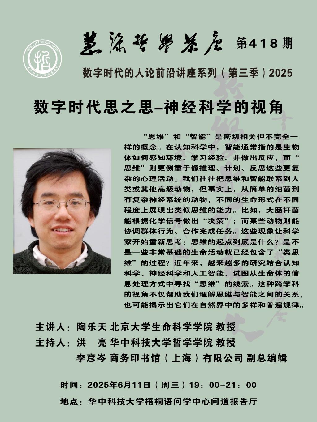 陶乐天,北京大学生命科学学院教授。致力于研究计算神经科学。在北京大学主讲《生物数学建模》、《创意性实践》等课程。陶老师小时候就被从台北移居到纽约,梦想成为一名天体物理学家。在修得两个物理学学位和两个博士后工作后,他发现计算神经科学可能是他最终的使命。最近,他致力于神经元群体动力信息学的理论、脑神经网络模型、类脑计算,以及线虫行为及其神经环路的实时光学成像。