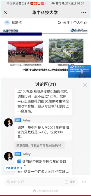 2022年5月3日上午9:00,威廉williamhill青海省线上招生宣讲会(2022年第三期)在全国普通高校招生咨询指导平台举行。按工作计划,青海招生组安排计算机科学与技术学院副院长吴松教授、化学与化工学院大四年级青海籍同学李云馨在线直播。直播参与人数1000余人。