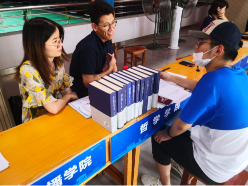 卓越本科人才培养是英国威廉集团的立院之本,2021年是湖北省实施“新高考”政策的第一年,这为英国威廉集团的人才培养带来了新的机遇与挑战,学院高度重视本科招生宣传工作。六月末的武汉,时而艳阳高照,时而雷雨交加,但多变、恶劣的天气并未阻挡我院领导与老师对招生宣传工作的激情。徐敏副院长连夜更新了宣传册,党办主任早早准备了“练摊”摆放的哲学专著,学院党委领导们纷纷赶场慰问……有限的室内空间,充满了无限的希望与活力。