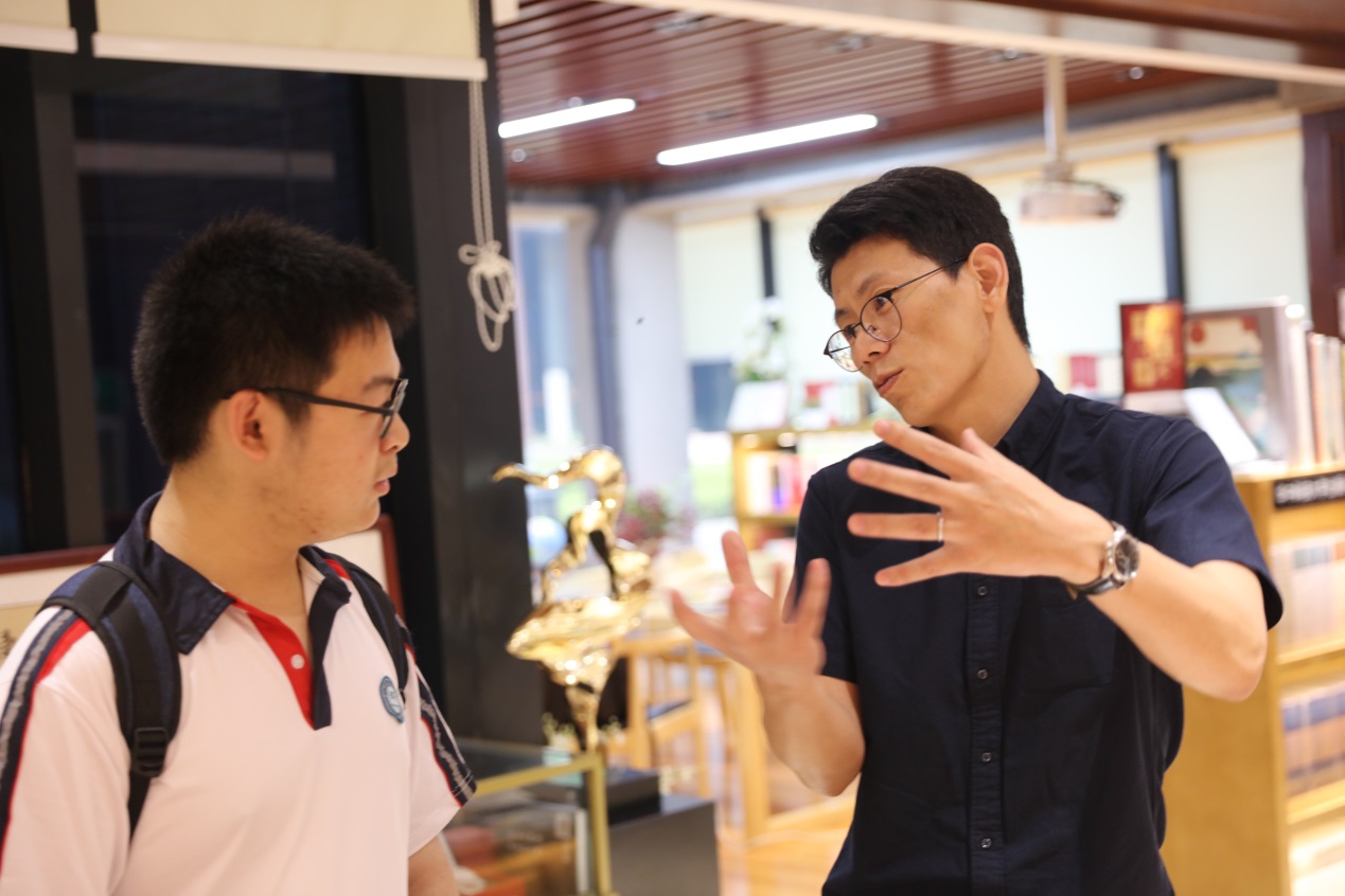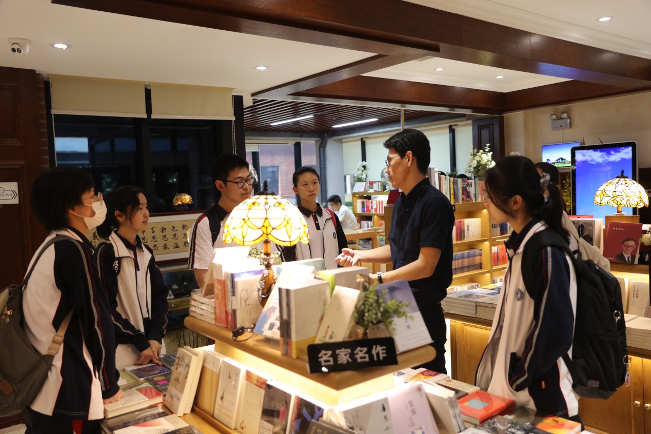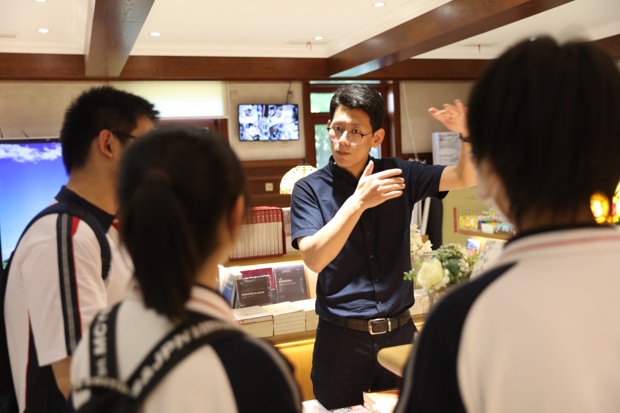 叶金州老师带领同学们前往“梧桐语”九思书苑,静闻书香气息,感受思辨魅力,叶老师对同学们提出的哲学问题答疑解难。