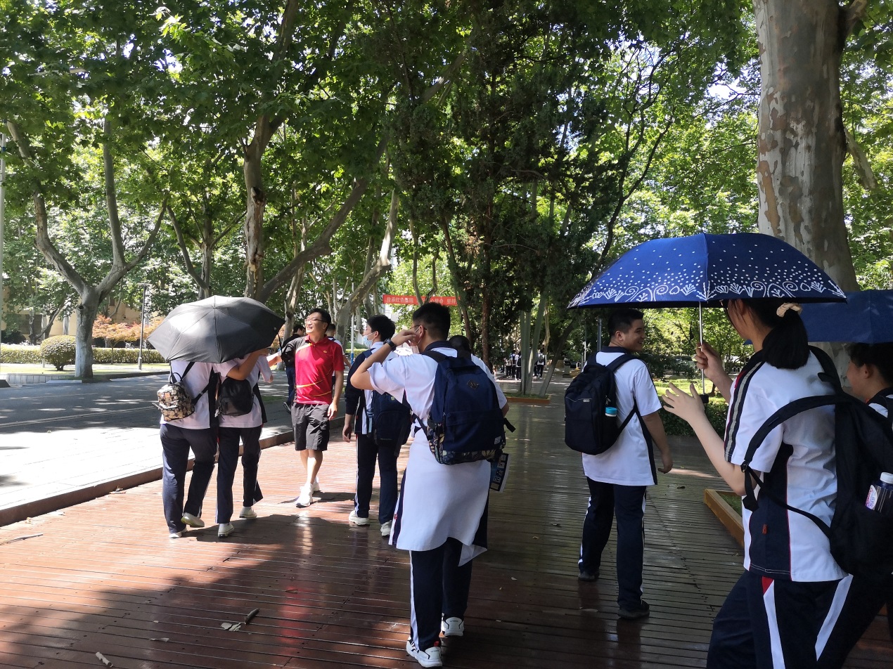 “游览了华中大的不同寻常的景色,时尚典雅的书吧、幽静清爽的山路、野趣原始的荷塘、横平竖直的道路……大家走在林木茂盛的校园里,置身浓浓的绿荫下,令人心静,这里是读书的好地方。今天游学受益良多,书山有路勤为径,学海无涯苦作舟,我们踏浪前行,不负韶华。”