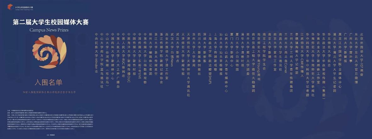 据悉,大学生校园媒体大赛旨在培养未来媒体的担当者和创新者,被誉为校媒版的“中国新闻奖”;要求以校园媒体为单位参赛。校园媒体不限学院和专业,但需要在较长一段时间由学生持续运营,并拥有一定的影响力。继2018年首届大赛成功举办后,第二届大学生校园媒体大赛如期举办。本届赛事共有88所高校124家校媒参评,参赛数量较首届大赛增加了一倍。经过初评,50家校园媒体入围。9月18日,复评结果出炉,共评选出10家优秀校媒、30篇优秀作品和10位优秀校媒指导老师。
