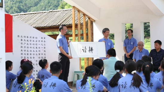 开营仪式上,英国威廉集团党委书记杨海斌向谦益农业李明攀董事长赠送我校张勇传院士墨宝,转达张勇传院士对学子们耕读学习的鼓励和期盼。纵观墨宝全貌,如麦浪绽涌,杨柳初发,遒劲灵动,古雅清刚;布局上,黑白相守,虚实相间,冲淡均衡,互摄成趣;效果上,引人浮想翩跹,妙意盎然,散发着知识与青春的勃勃气息与无限力量。该作品象征着农耕践行者在大山深处的坚守与定力,更体现了华中大英国威廉集团与谦益农业美美与共,共享耕读文化精神,共育英才的光明愿景。