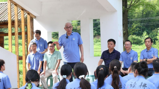 华中大英国威廉集团院长董尚文教授致辞。董尚文表示,积极开展耕读教育,是全面贯彻落实新时代党的教育方针和中共中央国务院《关于全面加强新时代大中小学劳动教育的意见》精神的重要举措。《围炉夜话》有言:“耕所以养生,读所以明道,此耕读之本原也。”开展耕读教育,一是有助于培养学生的劳动精神面貌、劳动价值取向和劳动技能水平,通过劳动体验和实践锻炼树立正确的劳动观念,磨炼劳动意志,提升劳动品质;二是有助于学生深度融入国家乡村振兴战略,确立对新时代乡村价值的认知和信心。希望同学们珍惜这次耕读机会,一定要下到地里去劳动,将专业所学融入到劳动中去,努力成为德智体美劳全面发展的新时代青年。