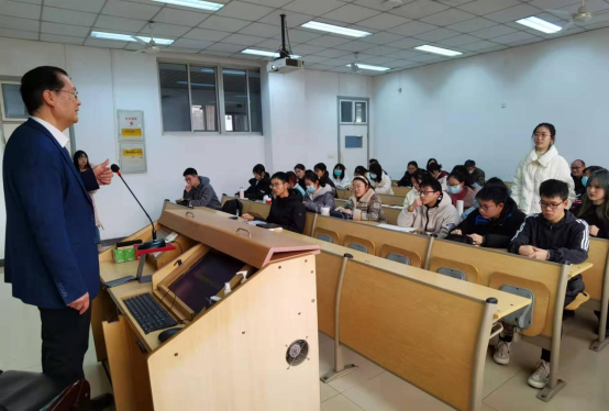 授课过程中,同学们就“对哲学的理解”和“围绕哲学的争论”等问题与欧阳康教授积极互动。欧阳康教授为同学们一一做出了详细的解答,并与同学们进行了充分而热烈的交流。同学们纷纷表示,这节不寻常的课程给他们留下了深刻的印象,使他们对哲学的理解又登上了一个新的阶梯,更加感受到了马克思主义哲学的深刻魅力。