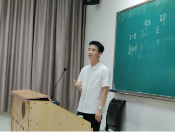第一位答辩人是哲学1901班的丁一达。他以“学以成人”为核心思想,分享了自己大一大二学年的学习经验。他不仅广泛阅读——在大二期间阅读了约150本书籍,还曾作为负责人主持了两项省级大创,参与和组织了多场读书会,发表的作品被多家媒体转载。他在本专业刻苦钻研,得到学院老师的肯定与称赞;在学有余力的同时,他积极参与学生活动与公益事业,如开展公益文化讲座、参与对口扶贫项目、疫情期间深入基层社区、举办义演活动募集善款、带领实践队走访红色旅游景点等,并在新华社湖南分社实习期间获评“优秀实习生”。