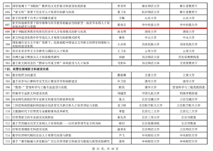 图:教育部公示首批新文科研究与改革实践项目拟立项项目(部分)