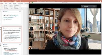 在华中大学习的第二个春季,哲学1801班的同学们就与意大利籍外教Daniela Caterina老师相识,并一起学习《专业德语》课程。由于疫情的原因,本学期,身在意大利的Daniela老师以网络直播的方式为18级的同学们讲授国外马克思主义哲学和人文社会科学哲学两门课程。