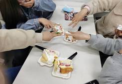 4月2日下午,班委成员前往集贸甜品店为班级同学们购买了一个12寸的大蛋糕和松脆可口的蛋挞,让我们通过一组照片,感受他们品尝美味的幸福瞬间吧!