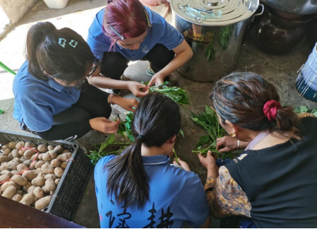 在社会实践的这一周里,我们有幸借助耕读教育的机会亲身体验了虚心谷的特色活动。我们上山砍柴,下山劈柴;在艾草地里挥舞着镰刀,在骄阳下翻动着艾叶;我们在水田里除草,在红薯地里施肥,在厨房烧柴做饭,在清晨洒扫庭院……