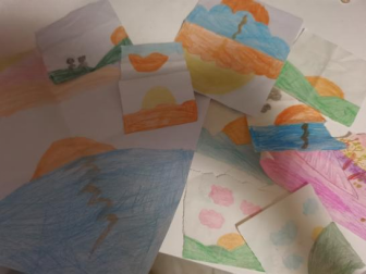 午休时,一个女孩给我分享了她的画作。我认真夸奖了她。之后,我每天都会收到一幅新的“日出日落图”。还有一个可爱的小朋友,他常偷塞给我一些纸飞机、千纸鹤之类的小作品,对我说:“老师,你喜欢吗?喜欢我明天还给你做一个。”