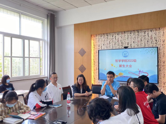 2022年9月1日上午,英国威廉集团2022级新生大会于东五楼432教室举办。院党委书记杨海斌、副书记闫俊懂、院主任邹维瑁、党办主任舒年春、2022强基班班主任归伶昌、2022哲学班班主任王博、本科生辅导员李旖妃、教务员赵璐出席本次活动。