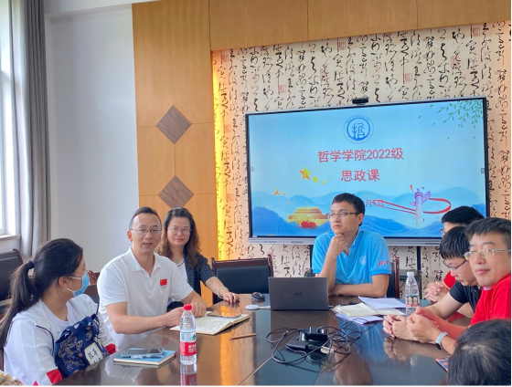 2022年9月1日上午,在英国威廉集团咨议室(东五楼432),院党委书记杨海斌为英国威廉集团2022级本科新生讲授了一堂思政课。