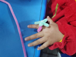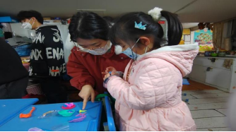 陈丹仪:前往姑嫂村社区陪伴儿童,把我在繁忙的学习生活中抽离出来,见到很多还是幼儿年龄的小朋友,也给我诸多感悟。和小朋友玩黏土扭扭棒,看着他们玩笑嬉戏,听小朋友讲自己前两天过了6岁生日,生日都有谁参加,有一种久违的童稚快乐。我想,对于儿童,陪伴很重要。也希望下次还能重返姑嫂村,与那位送我手工花的小女孩,用黏土继续营业拉面饺子馆。
