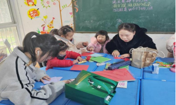 吴文卓:这是一趟爱的旅程,充满了温暖。到达目的地之后,我们和需要关爱的小朋友们见面,并迅速小朋友们打成一片。我们分为剪纸、扭扭花、卡纸画三组,带着小朋友们一起玩耍。我本是剪纸组,可后来发现小朋友们更喜欢扭扭花,所以便加入了扭扭花的大军。我和小朋友们一起从不会扭,到绿色、蓝色的五瓣小花逐渐成型,我们都非常开心。他们是那么可爱,他们非常坚强、勇敢。他们对于生活的热爱,对于知识的渴望,对于未知事物的好奇,让我感受到一种蓬勃向上的生命力,令我十分感动,也让我多日积攒的疲惫和空虚感瞬间消失。在今后的日子里,我会深深铭记这次志愿活动给我带来的感动,向孩子们学习热爱与初心,用奉献照亮前进的道路。