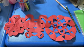 第一小组开展的是绘画与剪纸活动。志愿者们询问小朋友们喜欢的剪纸图案,并协助他们用剪刀、模型、纸片等工具绘制出来,再剪成想要的样子。小朋友们在此过程中非常活泼,积极表达自己的想法,与志愿者们配合地十分融洽。