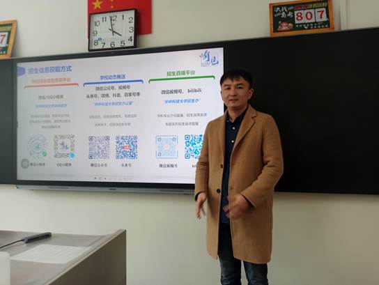 当天下午,白发红老师代表招生组走进高一班级,利用学生喜闻乐见的短视频和多媒体教学手段,就华中大概况、一流师资、一流科研平台、学科建设、人才培养、社会声誉、青海投放专业、历年招生情况,以及选科覆盖的能报考专业、就业岗位,进行了较为详细的介绍。