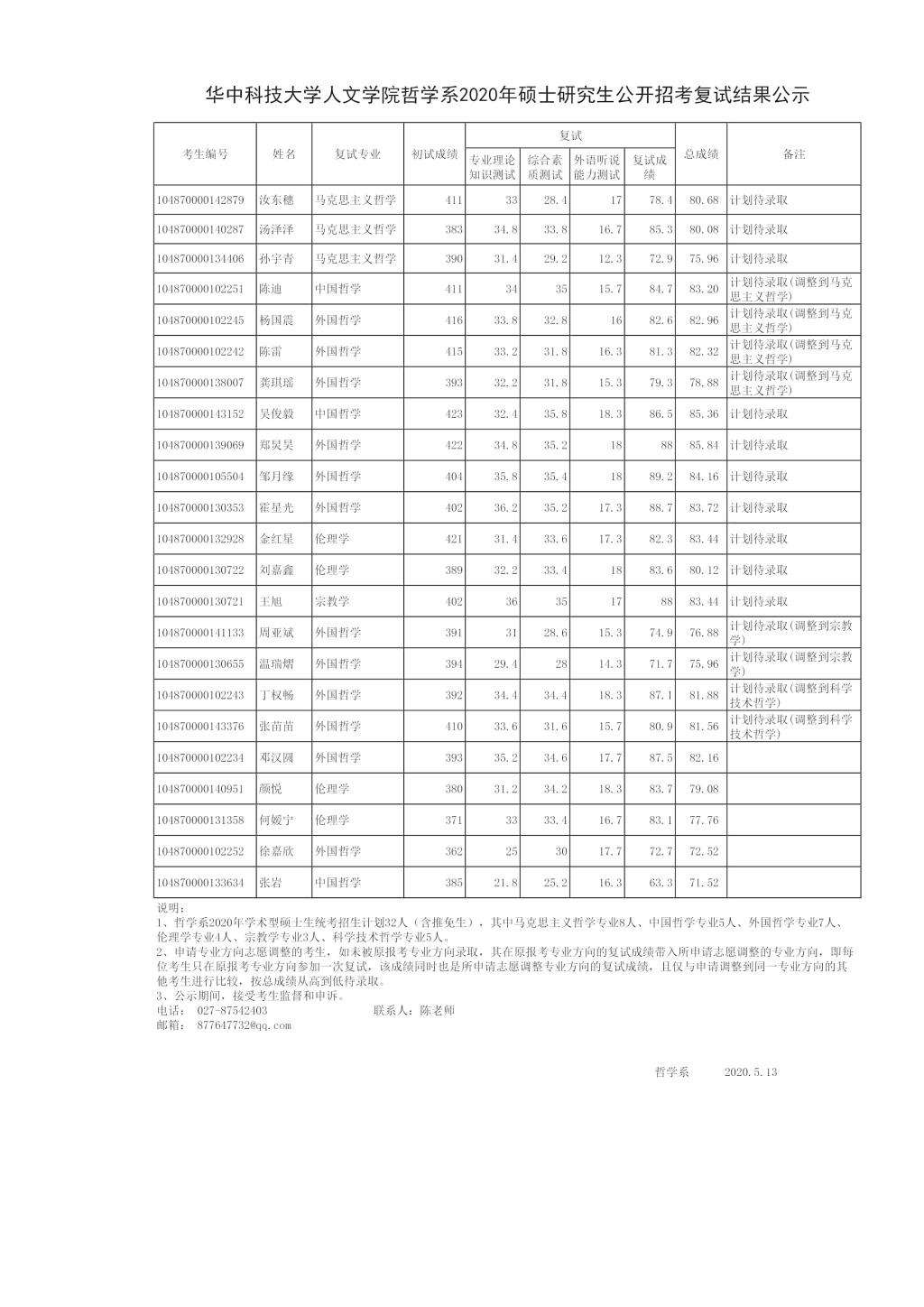详情请查看附件:威廉williamhill人文学院哲学系2020年硕士研究生公开招考复试结果公示