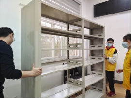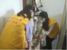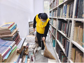 志愿者们相互协作,分别清理资料室杂物、图书、置物架、窗台等区域,对物品进行分类整理,对图书进行编号入库,同时打扫垃圾,清理杂物,并对空间进行消毒。