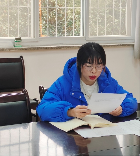 研究生辅导员邓小磊就2021年工作内容及下学期规划进行汇报。去年一年发展学生党员35名,完成党内统计工作;完成学生假期去向统计;研会工作有序推进,预计下学期完成研会优秀部门、优秀个人评选;党建中心预计下学期进行述职及招新工作;配合党委、工会、办公室完成学术讲座海报、宣传稿推送、日常宣传等任务,积累宣传工作经验,组建学生新闻宣传媒体团队;修订评奖评优细则;做好体育育人工作,组建体育工作委员会,计划下学期邀请专业教练讲授健身、科学饮食知识。