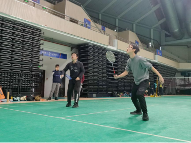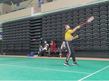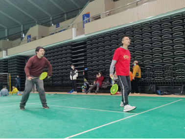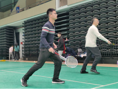 比赛开始前,由姓氏首字母随机选配对手和确定上场顺序。下午两点三十分,比赛在大家的掌声中拉开帷幕。此时室外已是寒气逼人,而赛场上却热烈非常。场上羽毛球你来我往,场下欢呼声此起彼伏。