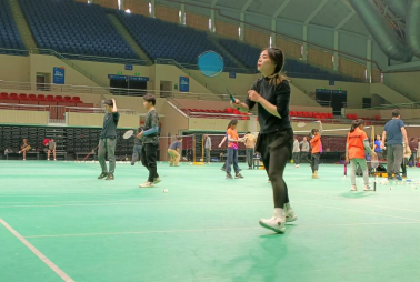 本次活动分为男单、女单、混双等赛程,采取淘汰赛制。比赛开始前,参赛选手早早来到场地进行预热练习。