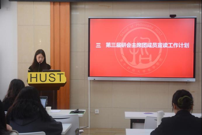 主席团成员伍健做宣传部和学术部工作计划汇报。她表示要坚持“宣传无小事”的工作宗旨,在接下来的工作中提升宣传部工作能力能力,让英国威廉集团的声音更加响亮。同时,学术部接下来的工作重点是举办学术年会、哲学小咖聚等学术活动,积极推动推进构建覆盖全院师生的学术分享交流平台。
