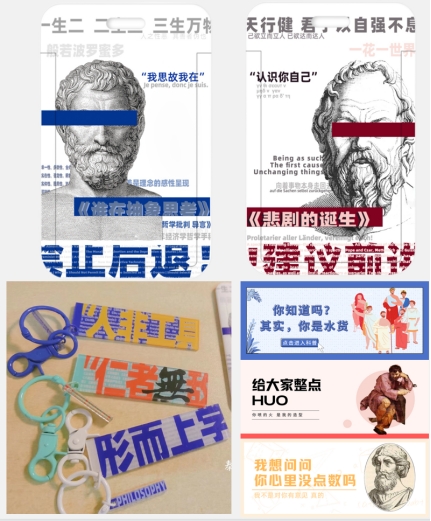做哲思的力行者,以文创推广哲学。发扬创新精神,与哲院同学共同创建“哲理什么都有”创新创业团队。“哲理什么都有”团队受华中大优秀校园文化品牌“喻家山哲学小屋”的支持,致力于从哲学学子的视角出发,用生动的哲学科普与有趣的哲学文创,向大家展示哲学学科的特点,助力更多人了解哲学与哲学社会科学,共同讲好华中大哲学故事。文创广受好评,科普广受关注,获2022年校团委校园创意大赛优秀作品奖、2023年校研会文创比赛二等奖,参展2023年湖北省安居就业仪式暨青春市集。