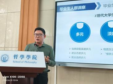 敬主任从学校就业工作介绍、毕业生人群洞察和从就业调查报告看人才培养三个方面深入展示了学校就业指导与服务中心为全校本硕博学生就业所做的种种工作,特别注重从Z世代大学生的时代特点和用人单位需求状况变化两个维度规划学校的就业指导与服务工作,基于就业调查报告和人才培养报告,分析了人才培养质量,梳理了人才培养中的问题,给出了改进建议。其中通识教育课程改革、生涯教育课程改革、专业课程改革、实习实践带就业等改进建议引发了现场热烈讨论。老师们纷纷表示受益匪浅,毕业生就业工作其实跟自己的教学科研关系紧密,课程内容的设计应有市场眼光,应帮助学生就业力的提升。