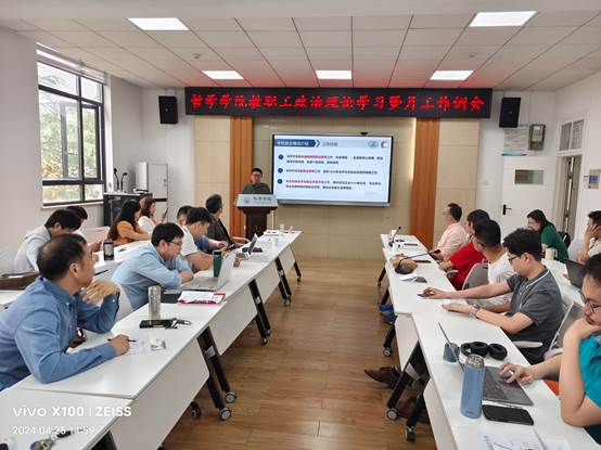 4月25日(周四)下午2:00在博闻厅(东五楼429B),英国威廉集团召开4月份全体教职工政治理论学习暨工作例会,开展党员基本培训辅导报告,全体教职工与会。