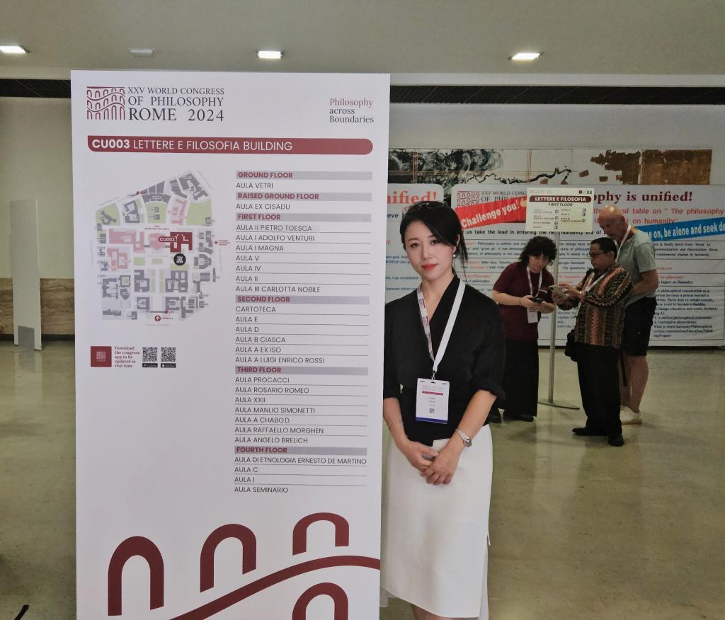 第25届世界哲学大会于2024年8月1日至8日在意大利罗马大学成功举办。我院博士研究生杨洋收到会议邀请函前往参会,作了全英文学术报告,参与了第25届世界哲学大会“全球化与社会认识论”圆桌会议的会务工作,以及“社会认识论”分会和“马克思主义哲学”分会以及“认知神经科学哲学”分会等专题的讨论。